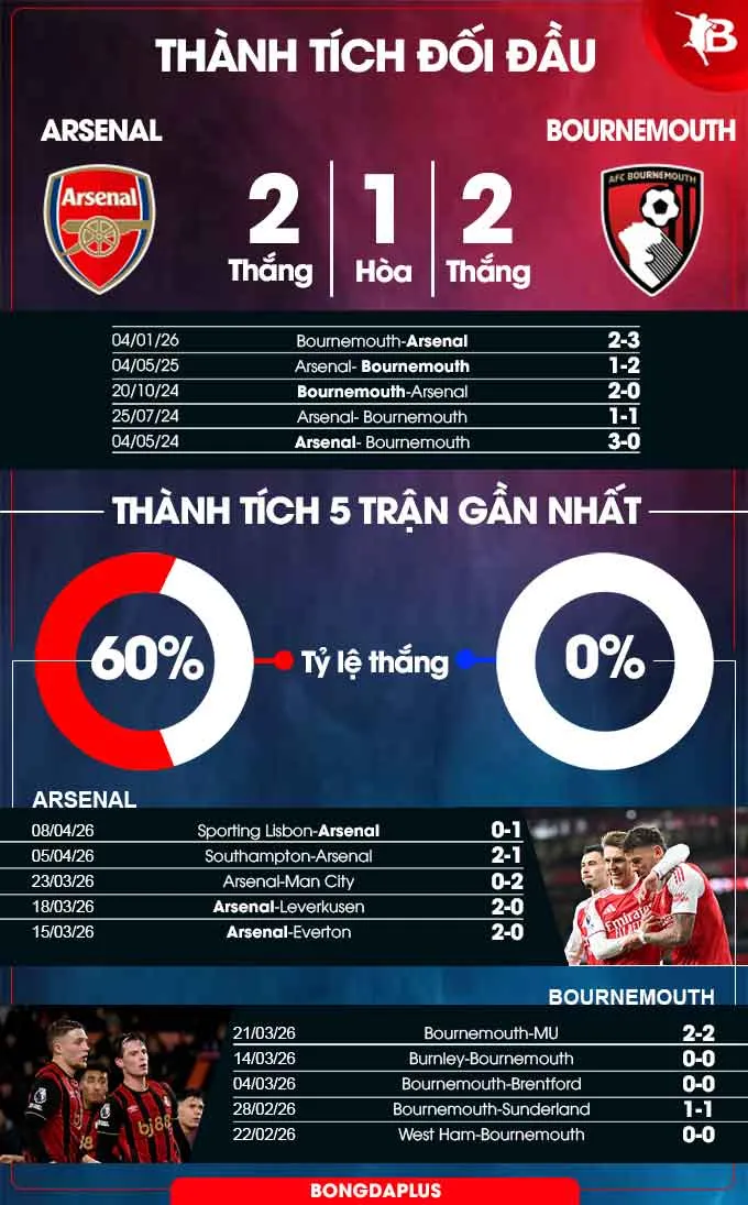 Lối chơi có tổ chức, kỷ luật và khả năng phản công sắc lẹm là vũ khí đáng gờm của Bournemouth. Thống kê cho thấy họ đã đánh bại Arsenal trong 2 trên 3 lần chạm trán gần đây. Với Arsenal đang phải chia sẻ sức lực cho hai mặt trận, đây chính xác là thời điểm lý tưởng để Bournemouth tìm kiếm một kết quả tích cực.